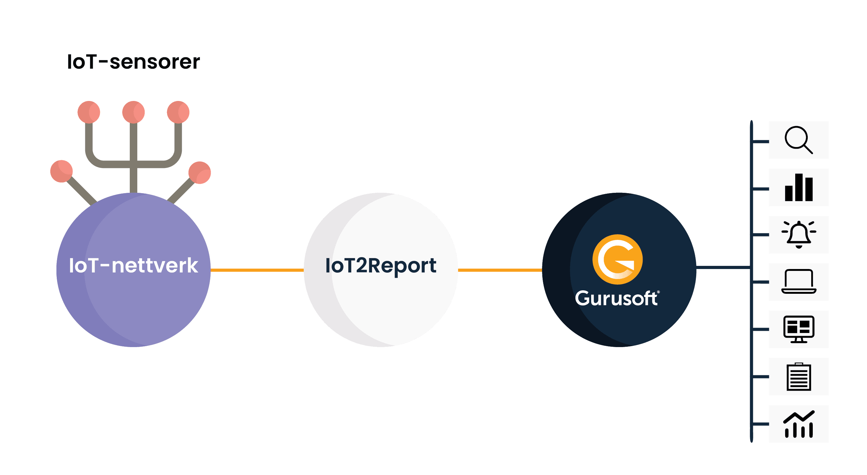 Vi sørger for at organisasjonen får fult utbytte av IoT sensorteknologi i digitaliseringsarbeidet. Teknologien gjør det gjør det kostnadseffektivt og sikkert å innhente mer viktig data som kan benyttes for bedre drift og ressursbruk. Gurusoft Report gjør data fra IoT sensorer og andre kilder tilgjengelig i en og samme løsning, slik at man enkelt kan nyttegjøre seg av dette.